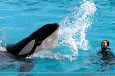 #Girls 2021.04.06 先ずワタクシのジャンプを浴びてもらうワヨ♪それからAmiちゃん!ラビーね「Wonderful World」歌ったの♪シャチパフォーマンス5回目です!鴨川シーワールドにて 2021年4月3日 C0005…