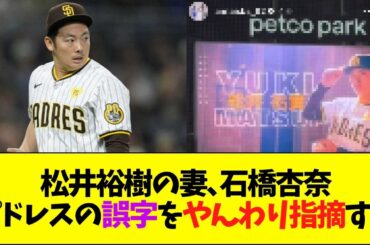 松井裕樹の妻、石橋杏奈、パドレスの誤字をやんわり指摘する