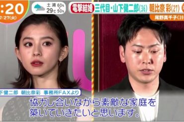 電撃結婚 三代目・山下健二郎 (36) 朝比奈彩(27) 尾野真千子 (39) 再婚 『はやドキ!』 2021年07月21日