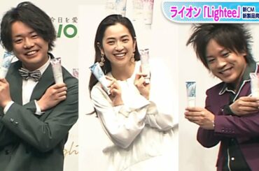 中村アン、ニッコリ笑顔でシュウペイポーズ披露 ライオン『Lightee』新CM・新製品発表会