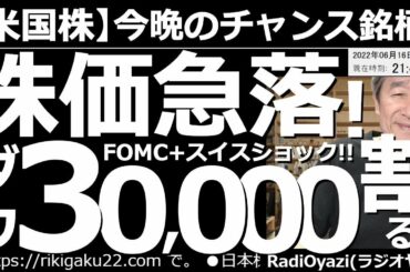 INVESTMENT 2022.06.16 【米国株-今晩のチャンス銘柄】株価急落(FOMCとスイスショック)!NYダウは今晩30,000ドルの大台を割る? FOMCで27年ぶりに0.75%の利上げが決まった。来月28日のFOMCまで緊張続く?…