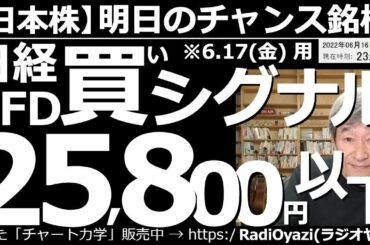 INVESTMENT 2022.06.16 【日本株-明日のチャンス銘柄】日経平均(CFD)、6月17日(金)の買いシグナルは25,800円以下! 相場がにわかに「リスクオフ」ムードになっている。明日から月曜日にかけて暴落もありえるので要注意。…