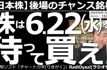 INVESTMENT 2022.06.17 【日本株-後場のチャンス銘柄】株は6月22日(水)を待って買え! 来週から選挙が始まる。株式相場は全般に弱いが、選挙をキッカケに上がる可能性あり。今日も「今、買いを検討できる銘柄」を厳選して紹介する。…