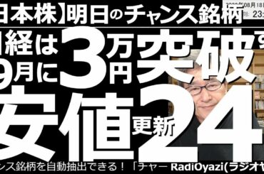 INVESTMENT 2022.08.18 【日本株-明日のチャンス銘柄】日経平均は9月に3万円を突破する可能性あり?安値更新24銘柄を狙え! 今日の日経平均株価は、前日比-280円と調整したが、調整を浅く短く終え、再上昇する可能性がありそう。…