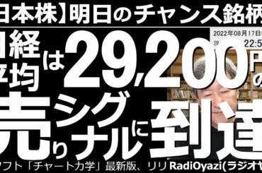 INVESTMENT 2022.08.17 【日本株-明日のチャンス銘柄】日経平均は29200円の「売りシグナル」に到達! 日経は今日の終値の段階で売りシグナルに到達した。ただ、明日の売りシグナルが300円上昇しており、さらなる上昇がありえる。…