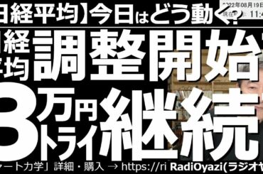 INVESTMENT 2022.08.19 【日経平均-今日はどう動く?】日経平均は調整開始?それとも、3万円トライ継続? このところ上昇が目立つ日経平均。3万円も視野に入ってきた。ただ、昨日から今日にかけては、調整色も強い。このあとどうなる?…