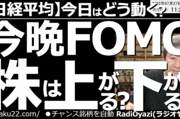 INVESTMENT 2022.07.27 【日経平均-今日はどう動く?】今晩FOMC!株は上がる?下がる? 28日午前3時に米FOMCで政策金利が決まる。今回は0.75%の利上げとなる可能性が高い。パウエル氏の会見もあり相場の反応に要注意だ。…
