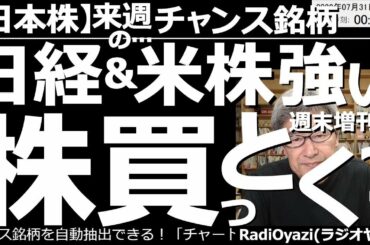 INVESTMENT 2022.07.30 【日本株-来週のチャンス銘柄(週末増刊号)】日経平均とアメリカ株(指数)が強い!株、買っとく? 週末の米市場は上昇し、日経平均も28,000円手前まで上昇している。月曜日も株は強い?買ってよい銘柄は?…