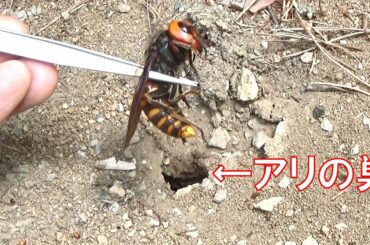 アリの巣穴にオオスズメバチを詰めるとこうなる