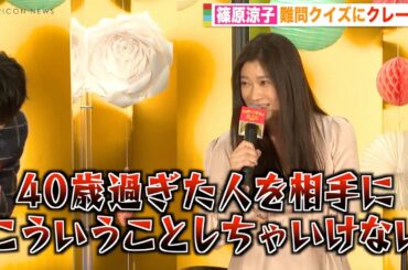 #Girls 2022.03.01 篠原涼子、イベント中に不満爆発でガチクレーム「40歳過ぎた人にこういうことしちゃいけない」 難問クイズに大苦戦で中村倫也が爆笑! 映画『ウェディング・ハイ』公開直前イベント…