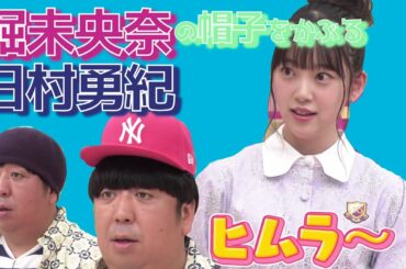 ”堀未央奈”の帽子をかぶる”日村勇紀”[最高画質]