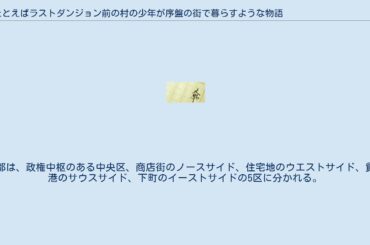 たとえばラストダンジョン前の村の少年が序盤の街で暮らすような物語