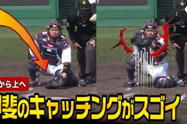 甲斐のキャッチングがヤバイ!佐々木朗希の169㌔と146㌔フォークを下から上へ