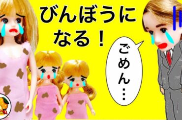 リカちゃん おうちが貧乏になってお風呂に入れない! パパが仕事を辞めて家族がピンチ! お弁当 おもちゃ ここなっちゃん