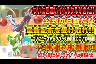 GAME 2022.09.14 【緊急速報】ついに色違いイベルタルがきた!公式から新たな最新配布を受け取れ!ニャオハとクワッスの進化とイーブイの新しい進化について!来年配信タイトル【ポケモン剣盾/SV/スカーレットバイオレット/GO…