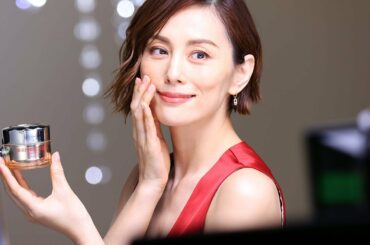 米倉涼子、Vネックの真っ赤なドレスに映える美肌デコルテ/「グレイス ワン リンクルケア」CM+メイキング+インタビュー