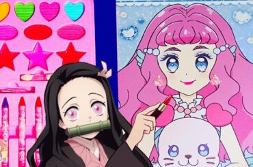 人魚のローラを禰豆子ちゃんがメイクアップ♪鬼滅の刃 トロピカルージュ!プリキュアのメイクアップぬりえセット