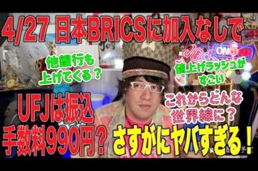 DRAMA 2023.04.27 4/27『日本沈没BRICSに加入なしで振り込み手数料990円一律』で10月開始へ⁈国民が立ち上がる時が来た⁈銀行が🏦【手数料990円】はヤバすぎる?未来人アーティストJOSTAR…