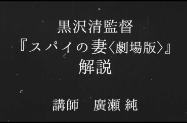 【WOT/CTチャンネル#09】黒沢清監督 『スパイの妻〈劇場版〉』解説 講師:廣瀬純(哲学・映画批評)