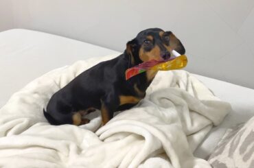 おやつかおもちゃか⁈究極の二択を迫られる犬