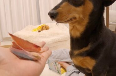 おや?カツオジャーキーの芳しい香りを嗅いだ犬の口元の様子が…?