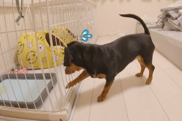 自分の尿が恋しくなり扉の前で無限に待ち続ける犬がかわいいw