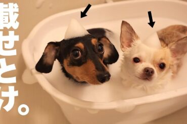 犬をお風呂に入れる時って頭にコレ載せなきゃいけないルールでもあるん?