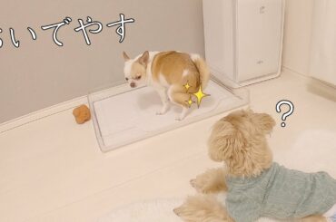 遊びに来た子犬を独特の流儀でもてなすチワワ