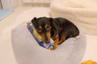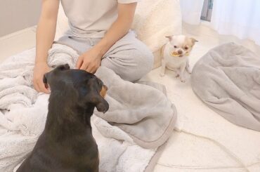 お気に入りのおもちゃを姉犬にどうしても自慢したい妹犬