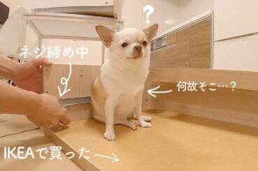 イケアの説明書がただでさえ分かりづらいのにチワワが邪魔しに来るので投げ捨てたい