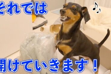 なかなか開封しない飼い主に代わってキレ気味に商品開封しちゃう犬