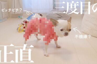 最近痩せたと評判のチワワ、過去にボンレスハムみたいと言われ封印した服に挑戦する模様