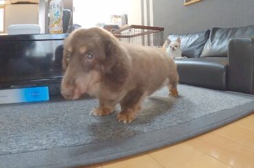 バァバに甘やかされ育った一人っ子チワワ、いつもの調子で食事中に席を外すもすぐ横には目ギラギラな大食らいチワックスが…乙。