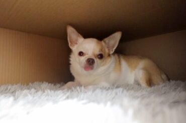 置いてあった段ボールを覗いたら…チワワがベロ出してました。