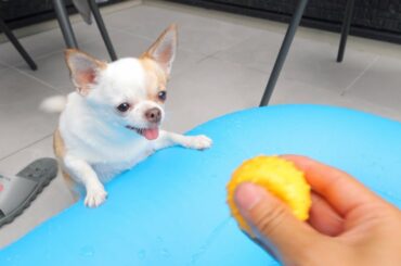 プール嫌いなチワワにお水パシャパシャしたら突然覚醒したw