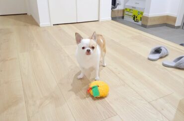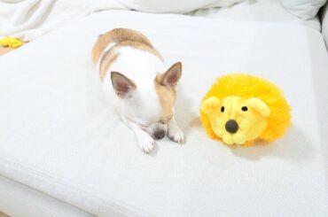 姉犬に壊される運命にあるライオン(2ヶ月ぶり5個目)を大事にするチワワ