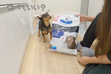 待ちきれずフードの袋を食い破る犬