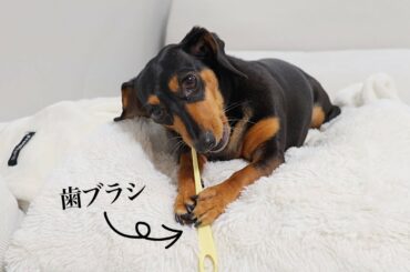 歯磨きなぞ1人でできるわ!と主張する犬に歯ブラシを渡したら本当に磨いた…汗