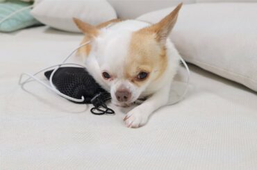 スマホの充電残り5%、充電器はチワワのお腹の下