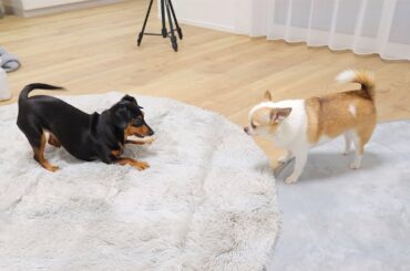 おニューの夏用ベッドを姉犬にソッコー強奪されるおチビチワワ
