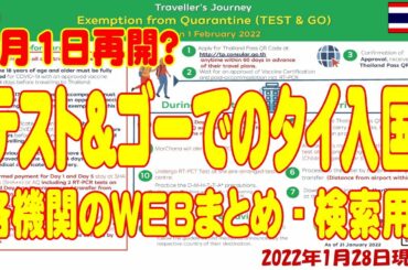 タイ:2月1日より隔離なし入国テスト&ゴーが再開予定、各機関のWEBアドレス等を説明欄に記載 (口頭説明無し)
