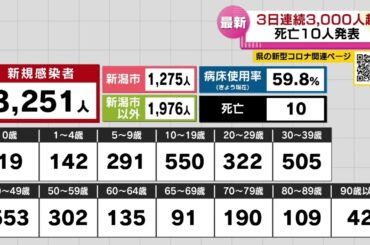 【新型コロナ】12/15 新潟県内で3251人の新規感染を発表 3日連続で3000人超え