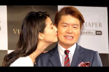 橋本マナミ、”ダイエットの恩人”ヒロミにキス連発 『Vアップシェイパー』商品発表会