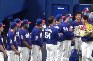 オリンピックで金メダルを獲得して祝福される大野雄大、投手陣とのタッチは適当(笑) (2021/08/17)
