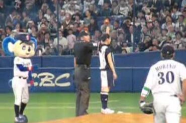 2012.03.30 開幕戦で武井咲さんの始球式をドアラがエスコート。