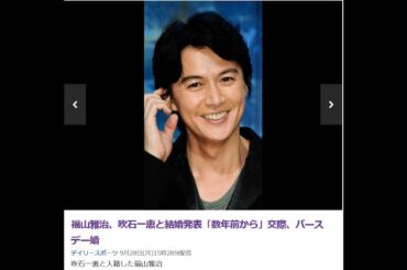 福山雅治、吹石一恵と結婚発表「数年前から」交際、バースデー婚