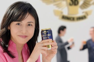 松嶋菜々子、カメラ目線で思わせぶりにつぶやき 粗品&吉田鋼太郎と「パーフェクト!」ポーズも 「パーフェクトサントリービール」新CMが公開