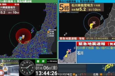 【緊急地震速報】石川県能登地方 震度4 M4.6 (2023/1/6 13:44ごろ 切り抜きアーカイブ)