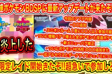 GAME 2022.02.22 【緊急速報】急遽ポケモンBDSPに最新アップデートが来たぞ!今回の新アプデ内容を解説!ついに増殖バグの全ポケモンと改造ポケモンが・ポケモンHOMEの〇〇追加きたなど・限定レイド開始きたぞ!…