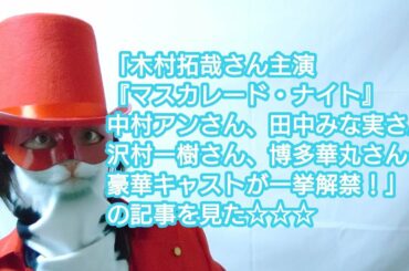 「木村拓哉さん主演『マスカレード・ナイト』中村アンさん、田中みな実さん、沢村一樹さん、博多華丸さんら豪華キャストが一挙解禁!」の記事を見た☆☆☆